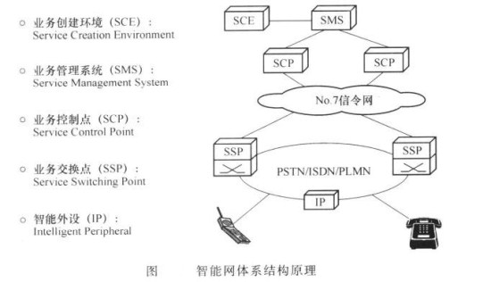 為滿足用戶對新業務的需求,20世紀80年代中期。電信網中出現了公共的業務平臺,隨后進一步發展成為智能網技術。智能網的基本思想是將業務提供功能從電路交換機中剝離出來,實現呼叫控制和業務控制的分離。這樣,交換機僅需要完成基本的接續功能,而通過附加的智能網業務控制點完成對業務的集中控制。智能網的基本結構如下圖所示。